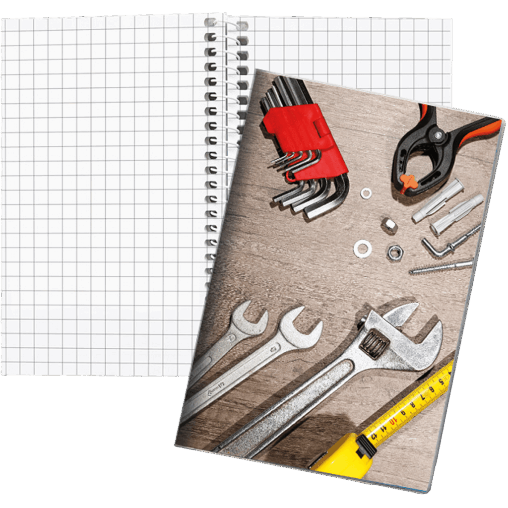 Vi tilbyder spiraliserede blokke i lommeformat indsat i plastomslag. Blokkenefindes i linieret eller ternet udgave, ideel til håndværkere eller andre som har behov for hurtige notater eller tegninger lige ved hånden.